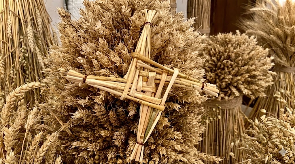Одним із найпізнаваніших атрибутів є хрест Брігід. Його не вирізали з дерева, а плели з соломи або очерету. Цей процес сам по собі був медитацією: руки переплітали стебла, створюючи чотирипроменеву фігуру, що нагадує сонячне колесо. Готовий хрест вішали над дверима оселі. Люди вірили, що він слугує щитом від пожеж та блискавок, а також не пускає в дім хвороби. Старий хрест, що висів з минулого року, спалювали, віддаючи вогню все, що він увібрав у себе, а на його місце вішали новий.