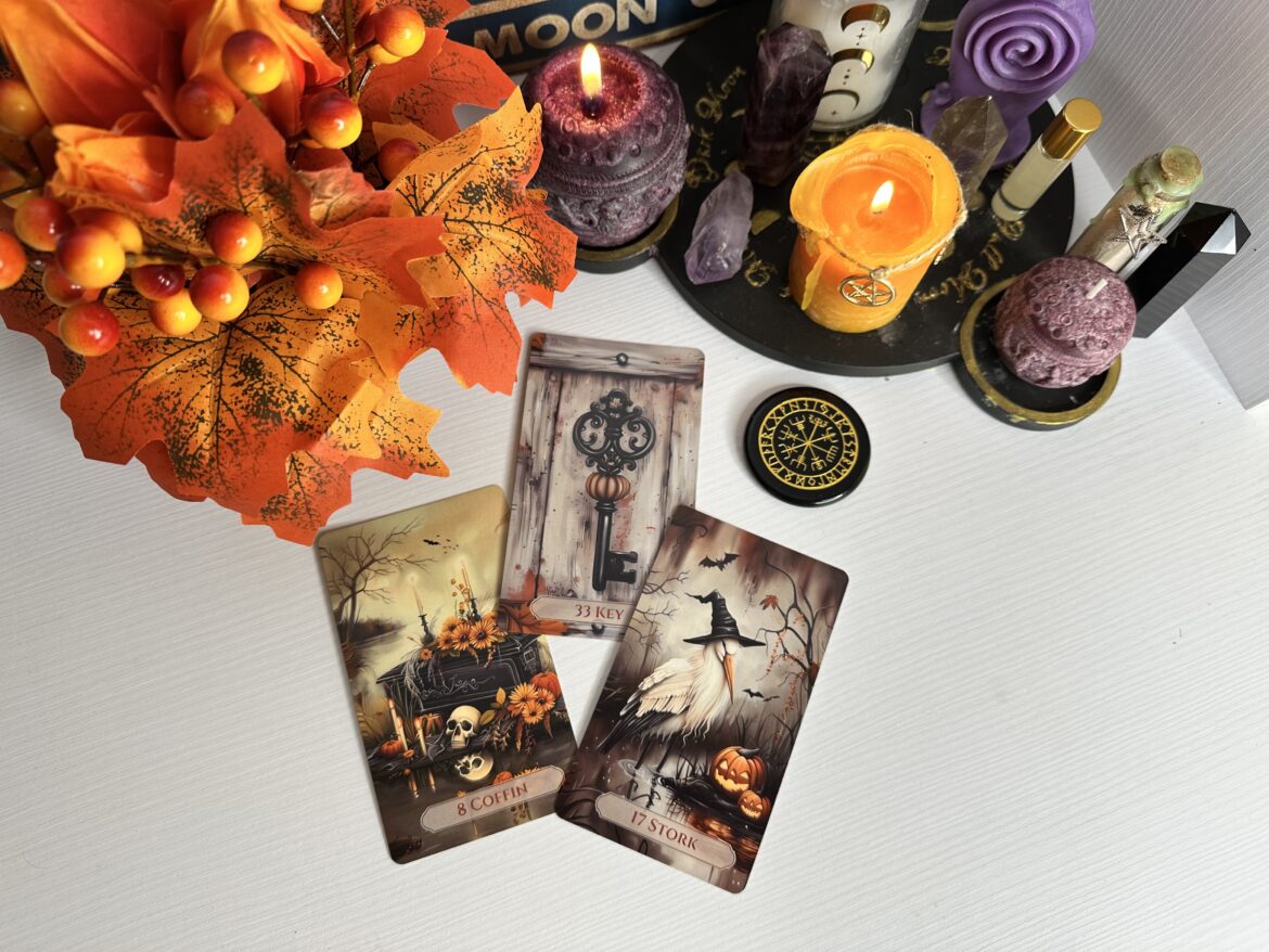 Гроб у любовній сфері говорить про закриття минулих історій або завершення застарілих моделей поведінки. Повний місяць витягає назовні те, що ви ховали, — і допомагає з цим попрощатися. Ключ — символ чесної розмови, що відкриває правду. Лелека — зміни, які можуть означати новий етап стосунків, переїзд разом чи народження нового рівня довіри.